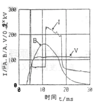 整機(jī)由測(cè)量控制電路、電場(chǎng)高壓產(chǎn)生電路、磁場(chǎng)線圈電流控制電路、通訊、打印機(jī)、液晶顯示電路等組成。其工作過(guò)程為:由測(cè)量控制電路發(fā)出指令,由開(kāi)關(guān)電源給磁場(chǎng)電容充電,通過(guò)控制電路監(jiān)控,當(dāng)磁場(chǎng)電容上的電壓達(dá)到預(yù)定值后,控制電路發(fā)出兩路控制信號(hào)分別控制電場(chǎng)高壓的輸出和磁場(chǎng)線圈電流的導(dǎo)通,使滅弧室處于強(qiáng)電場(chǎng)、強(qiáng)磁場(chǎng)的狀態(tài)中,滅弧室開(kāi)始放電,產(chǎn)生離子電流I,如圖2中的曲線I所示。該電流經(jīng)取樣電阻R和預(yù)處理電路后輸入單片機(jī),最后經(jīng)運(yùn)算由液晶顯示屏顯示測(cè)得的真空度值。